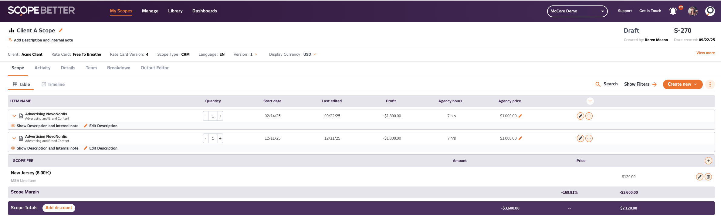 - Create your scope and populate with the services to be included