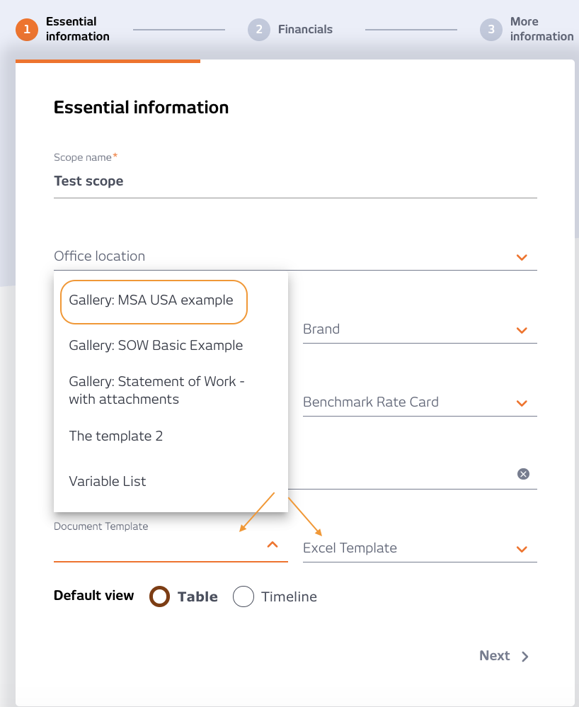 Creating a scope, be sure to choose the output (PDF / Word and/or Excel) when filling in the 1st stage of the scope form