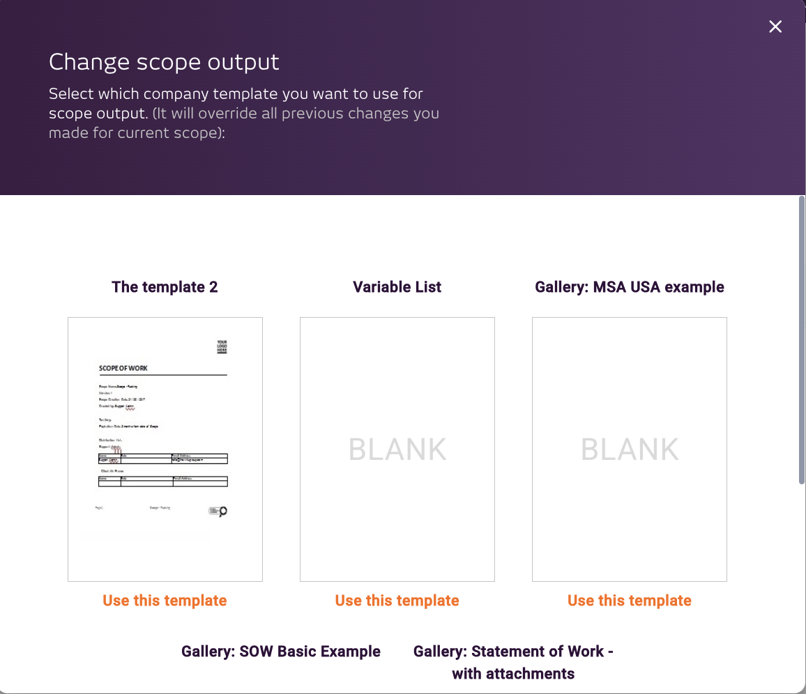 This new Master Output Template will be applied to your scope.