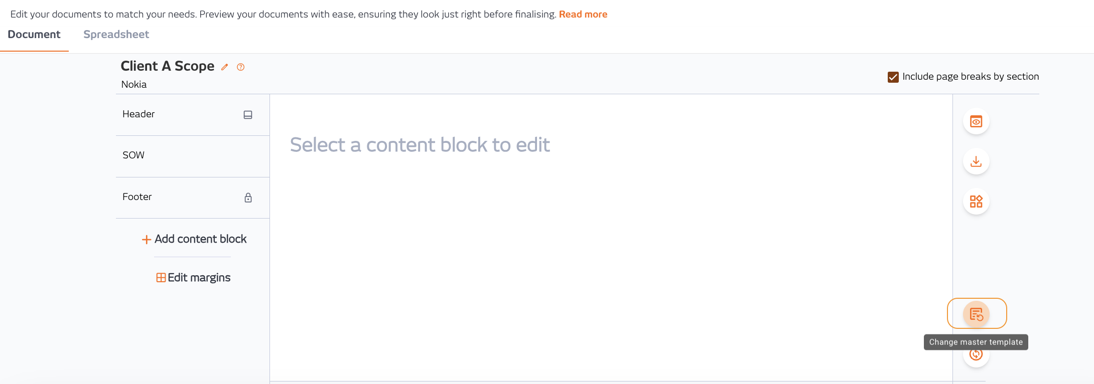 3. View the new Master output template required from the options available (pre-set) by your organization