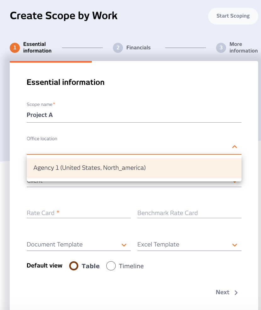 4. When your users create a new scope, and select the office they are working in/scoping for, the system can easily identify the clients that are associated to that office making selection simpler.